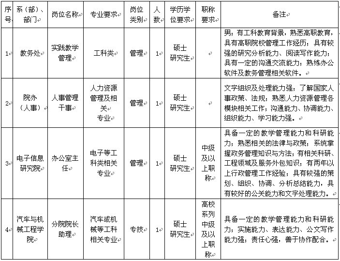 (一)招聘岗位、职数等要求如下表所示: