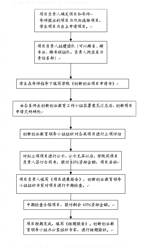由各系师生创新创业教育工作小组签署意见汇总后,创新项目申请交科研处 |