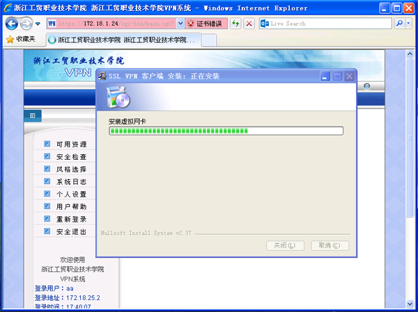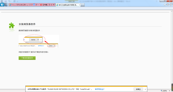 3.按照提示安装VPN控件(如有其它弹窗阻止程序,需要关闭阻止程序,以使VPN控件正常安装)。