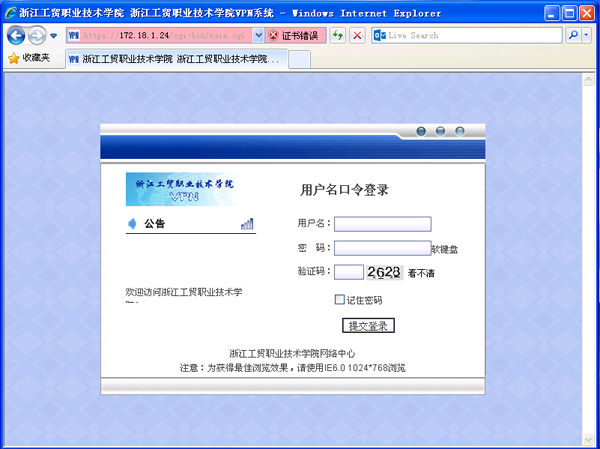 4.完成安装后,系统出现登录界面(如下图),使用学院个人统一身份认证用户名(8位工号)和密码登录SSLVPN