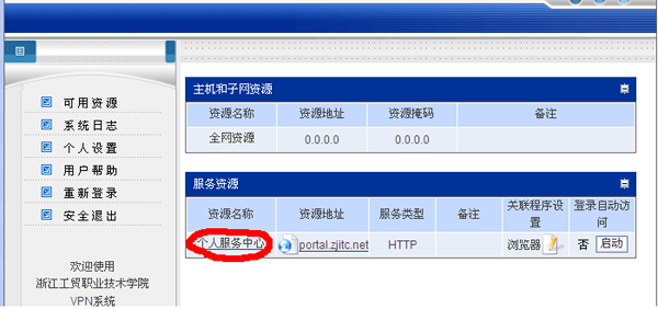 6.完成登录后,选择点击“个人服务中心”可以使用数字化校园应用业务,使用过程中请勿关闭VPN页面。
