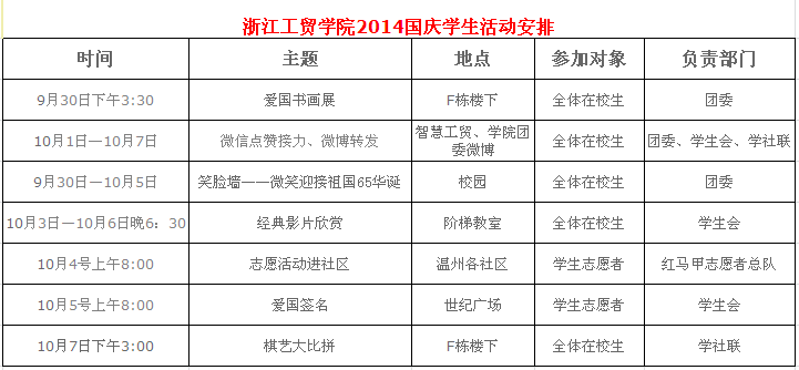 学院2014国庆学生活动安排
