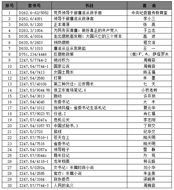 推介30种当前热门有关廉洁文化建设的学习读本及文学作品,全院师生可现场借阅。