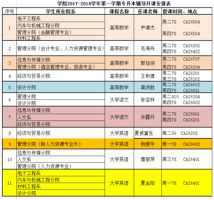 为满足专升本同学升学考试需求,根据学院整体教学安排,本学期专升本辅导安排通告如下: