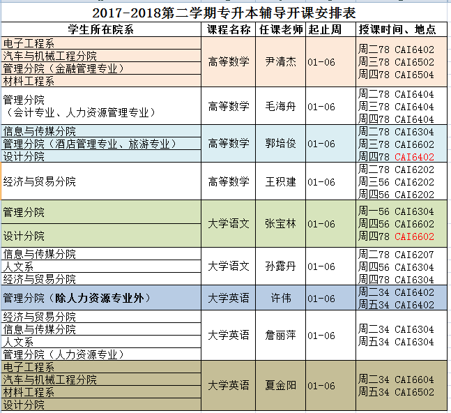 为满足专升本同学升学考试需求,根据学院整体教学安排,本学期专升本辅导安排通知如下: