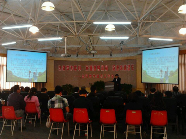 为进一步推进教育教学改革,贯彻学院二级管理改革精神,提高我院教学质量,10月29日下午,学院召开了“以教学为中心、完善督导机制、促进内涵建设”全院教学督导工作会议。学院院长贺星岳、各二级学院(系)主任和学院、分院(系)全体教学督导员参加了会议。