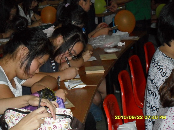 一首声情并茂的诗歌朗诵《春江花月夜》将同学们带入了中秋节的美好意境;而我院学生的原创诗歌作品《温州的月》在表达学子对故乡亲人浓浓的思念之情的同时也告诉故乡的亲人他们在温州生活的美好;小品《烤羊肉串》教育学生做人、做事都要以诚信为本。何院长为在场的同学送上学院为他们准备的精美月饼,并一起品尝,同时祝福同学们中秋快乐,希望大家在工贸的大学生生活充实而有意义,并与大家一起表演手语《感恩的心》,在温馨的歌声中,在场的同学都为自己的家人写了一封家书,学院也将统一为同学们邮寄家书。在为同学们开通的亲情热线中,何院长与学生家长通过电话亲切交谈。我院师生开发的3G手机平台也为学生提供免费了的国内长途电话服务。