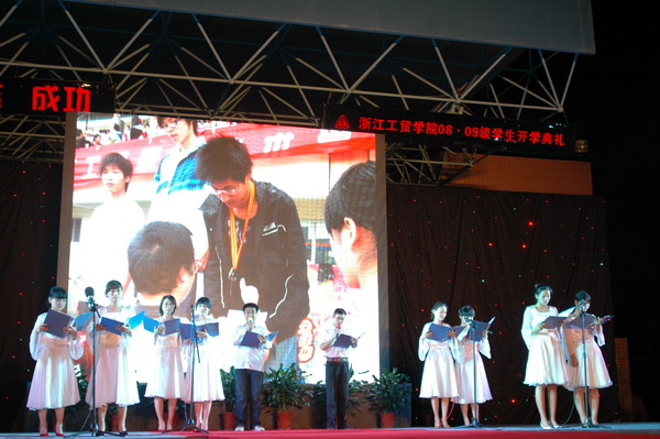 9月4日晚7点,我院隆重举行了“人文 · 励志 · 成功”——2008、2009级学生开学典礼。党委书记、院长何向荣、党委副书记、副院长盖庆武等党政领导班子以及各分院(系部)负责人,2008级、2009级全体师生参加了本次开学典礼。今年我院的开学典礼在内容和形式上做了大胆探索和尝试,无论是从现场布置还是形式内容以及领导讲话等方面较以往有了重大突破。整场典礼采取晚会的形式进行,既展示了我院师生近几年的优秀获奖作品和研发成果,也邀请了温州市知名企业家、我院历届优秀毕业生代表以及学生家长代表等给我院学生讲述了他们创业、择业、就业的经历和看法,使在座学生深受教育和启发。在本次开学典礼上,还举行了我院2009—2010年度“十佳学子”颁奖仪式和“我最喜爱的老师”评选启动仪式,来自汽车与机械学院数控0801班的陈俊等十名同学受到表彰。而今年我院“我最喜爱的老师”评选活动将采取网络投票和现场投票相结合的方式,届时学生可以在学院网站和活动现场为他们喜爱的老师投上宝贵的一票。典礼的最后,何院长做了精彩的主题演讲,强调了创新对高校发展和个人成才的巨大作用。他指出:“没有学校的创新,就没有科技的创新,没有科技的创新,就没有人才的创新。”整场典礼晚会在我院党政领导班子成员上台共同放飞希望之鸽,祝愿我院在创办教育服务型高校的道路上再次腾飞,再筑辉煌之后圆满结束。