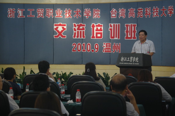 9月5日至12日,台湾高苑科技大学师生一行22人(21名学生,1名老师)来我院进行学习交流。学习交流期间,两校师生共同参加《温州台商投资及发展》《台湾与温州企业管理模式比较》《中国货物通关实务》《中国海关进口税则介绍》等相关课程的学习,并参观了泰庆皮革有限公司等台商企业、与台湾企业家座谈、举行两校师生体育交流和联谊活动等项目。在6日上午我院举行的欢迎及开班仪式上,我院院长助理张俊平、温州市台办副主任钱进、教务处处长台新民等向台湾师生介绍了我院及温州的基本情况。
