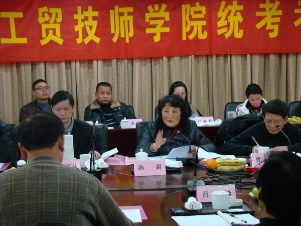 会议由技师学院副院长曹琦主持。技师学院院长孙蔚致欢迎词,院长助理教务管理中心主任欧阳江林对统考的目的要求等作了详细的说明。浙江工贸职业技术学院教务处处长台新民、学生处处长王春柳参加了会议并发表讲话。参加本次统考会议的合作学校有:淳安技工学校、黄岩职业技校、椒江职业中专、金华九峰职业学校、缙云职业中专、兰溪职业中专、宁波外事学校、瑞安技工学校、新昌职业技术学校等。