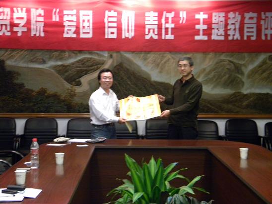 最终管理系获得了“爱国 信仰 责任”主题教育活动优胜奖,贺副院长为该系颁奖,同时对各系开学至今的主题教育工作进行了总结,肯定了各系思政工作的成绩和经验,同时也指出了工作中存在的不足,并对下阶段的主题教育和思政工作进行了部署。
