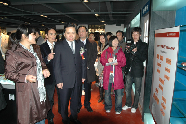 温州市委副书记市长赵一德、杭钢集团总经理李世中、温州市政府秘书长黄纯诚、温州市委副秘书长谢浩、温州市文化广电新闻出版局局长吴东、温州市委宣传部副部长徐顺聪、温州市规划局副局长郑晓东、温州市经贸委副主任游聚森等领导及创意文化相关产业协会、企业代表、学院师生等参加了活动。仪式由温州日报报业集团党委书记、社长何建平主持,我院党委书记院长何向荣教授、宣传部徐顺聪副部长、杭钢集团李世中总经理分别致辞,赵一德市长宣布开园。我院大三学生、今年刚获得“亚洲小姐”最佳上镜奖的王津津同学也作为学生代表与嘉宾们共同为创意园开园揭幕。
