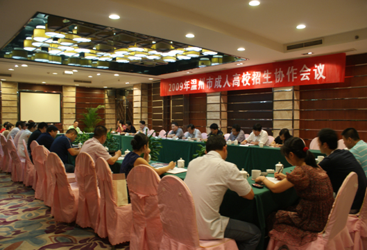 8月28日下午,温州市成人高校2009年招生协作会议在奥林匹克大酒店二楼举行,会议由浙江工贸职业技术学院成教学院承办。温州市考试院领导、温州市七所高校的成教主管院长、成教院院长及招生负责人出席了会议。浙江工贸职业技术学院副院长盖庆武为会议致辞,温州市考试院徐坚力院长分析了2009年成人招生总体形势,对招生报名、现场信息确认等工作提出了具体要求。会议确定了2009年的现场信息确认仍由浙江工贸学院承办,我院成教学院常务副院长刘鲁楣介绍了现场信息确认工作的组织实施方案,与会代表对方案进行了认真的讨论交流,对2009年成人招生现场信息确认工作形成了统一认识。