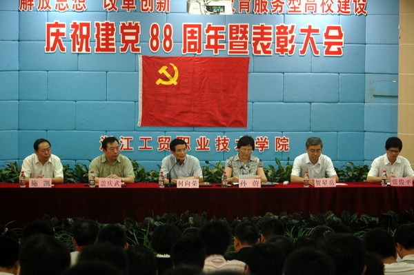 6月26日下午,我院在一号教学楼阶梯教室举行建党88周年暨表彰大会,学院全体党员、中层及以上干部参加了会议。学院党委书记何向荣在大会上作《解放思想 改革创新 推进教育服务型高校建设》报告,强调要认真贯彻中央关于“六个为什么”的学习要求,充分认清涉及我们党和国家应当坚持的指导思想、发展道路、政治制度、政党制度、经济制度、发展方向等六个方面的重大问题。何书记要求全体党员干部,一是要在工作中要深入地进行思考,处理好宁静致远与创新的关系;二是要处理好应用与创新的关系,三是要努力体现党员干部的先锋模范作用。他同时提出,各支部要结合学院创建示范高职院校的工作要求,立足校企一体,工学结合,提高人才培养质量的办学要求和努力创建教育服务型高校的工作要求,认真做好各项教育教学工作。