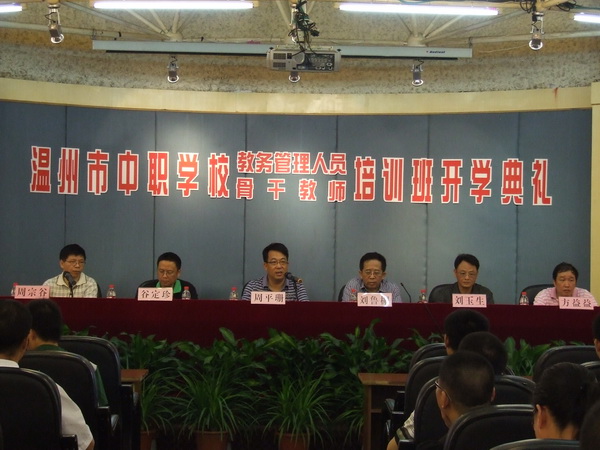 2009年温州市中等职业学校“教务管理”、“骨干教师”培训班于7月9日在浙江工贸职业技术学院举行,温州市教师教育院院长周平珊、浙江工贸学院成教学院常务副院长刘鲁楣等出席开学典礼并作了重要讲话。