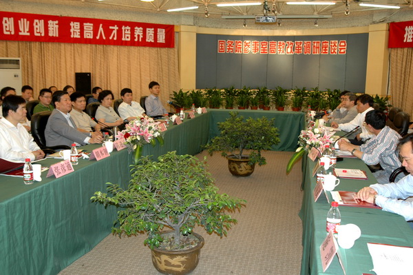 以国务院参事室陈进玉主任为组长的教育改革调研组一行在省市相关部门及领导的陪同下到我院进行视察调研。调研组在我院领导的陪同下视察了学院的主要教学科研基地,重点考察了温州轻工产品舒适度研究中心等多个科技创新服务中心及温州电子信息科技园、浙江创意园和温州知识产权服务园“三大园区”。调研组听取了我院党委书记、院长何向荣教授关于《校企一体促质量,社会服务共发展》的汇报。调研组负责人,国务院参事室主任陈近玉对我院教育改革及人才培养工作给予了充分的肯定和高度评价。陈进玉主任说,浙江工贸职业技术学院校企一体培养技能性人才,体现在学生受欢迎上、体现在紧密服务地方经济发展上、尤其是学院注重学生文化的培养。他希望学院继续发扬温州人敢为人先的精神,对有利培养学生,有利学校发展的,要大胆干,要把所有的工作与学校的教育工作联系起来,为教育服务。最后陈进玉主任对学校的发展提出了殷切的希望和建议,希望学院做足校训“大气致远,精工诚贸”的“大、远、精、诚”四字文章,要打造几个品牌专业,培养一批高级技工拔尖人才。