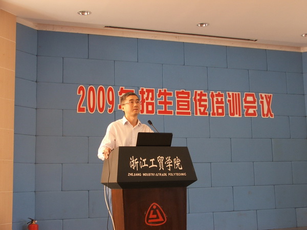会议首先由学生处副处长万登泸针对2009年浙江省实施的新课改高考方案、录取办法、考生咨询常见问题进行了解读,并就平行志愿填报、如何开展招生宣传等相关工作进行了指导。接着学生处处长王春柳就我院招生政策、宣传的亮点进行了介绍。
