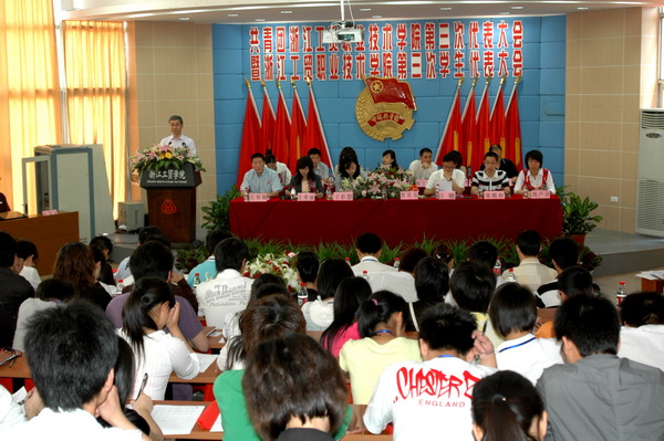 5月10日共青团浙江工贸职业技术学院第三次代表大会暨浙江工贸职业技术学院第三次学生代表大会在我院一号楼阶梯教室隆重举行。全省20多所兄弟院校发来贺信贺电。本次大会的主题是:创业创新,科学发展,为学院建设全国示范高职院贡献力量。