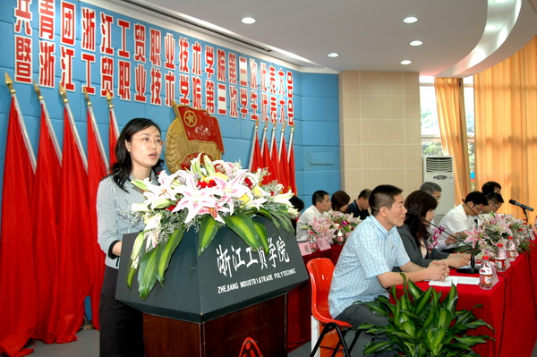 学院工会主席庄秀丽同志致辞,预祝大会顺利召开。团市委副书记王彩莲、杭钢团委书记吕敏和我院副院长贺星岳作了重要讲话。他们指出共青团工作是高校思政工作的基石。广大的团学组织必须紧密的围绕在党中央周围,联系实际,开展青年工作。以组织青年,服务青年,引导青年,维护青年 合法权益为自身职责,开创工贸团学工作的新篇章。