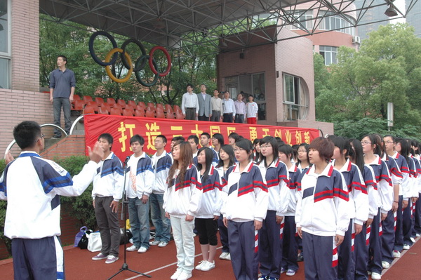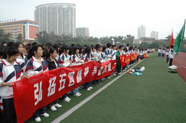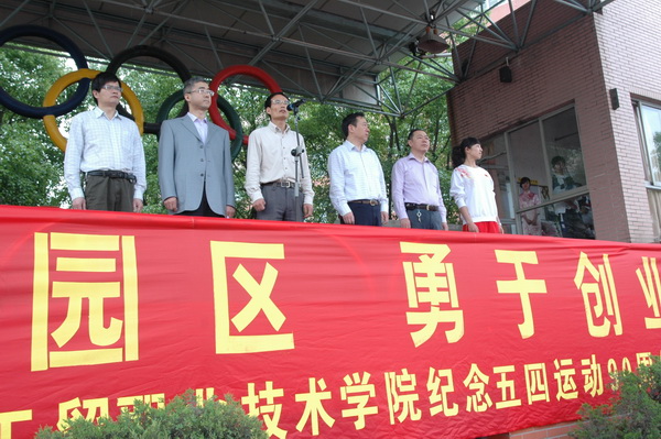 5月4日早晨,我院在学院运动场举行“国旗下青春誓言”活动,纪念五四运动90周年。全院师生、全体团员青年同升国旗,同唱国歌,同声祝福,共话使命。学院党委书记、院长何向荣在仪式上讲话,指出“爱国、进步、民主、科学”仍是对当代青年的要求,并结合我院实际,提出“建设三大园区,勇于创新创业”新主题,要求全体青年大学生认清形势,统一思想,切实推进学院的各项建设。第六届世锦赛冠军,郭晓敏老师代表全体青年领誓,“弘扬五四精神,勇于创业创新,实践科学发展,提升就业能力”。