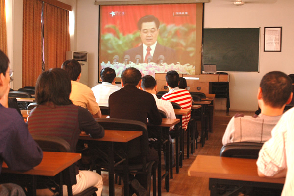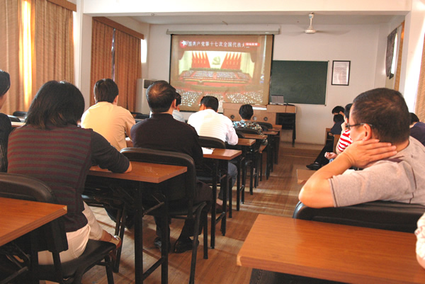 全党关注的中国共产党第十七次全国代表大会今天上午9:00在北京人民大会堂隆重开幕,按照上级要求,浙江工贸职业技术学院党委根据学院实际,认真组织学院党政工团班子成员、中层党员干部及全体教职工党员(上课教师党员除外)集中收看了十七大开幕式盛况,认真听取了胡锦涛同志在十七大上的工作报告。在观看盛况后,广大党员精神振奋,对我国建设中国特色社会主义、全面建设小康社会和和谐社会构建充满信心。