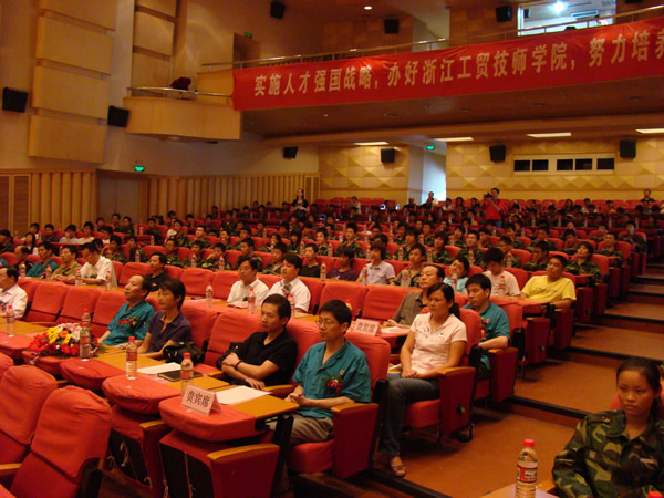 省发展和改革委员会白红霞处长宣读了批准成立浙江工贸技师学院的文件,毛以民处长代表省劳动和社会保障厅表示祝贺并讲话,教师和学生代表也上台发了言。