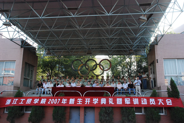 2007年9月25日,浙江工贸职业技术学院2007级新生开学典礼暨军训动员大会在学院操场隆重举行。学院党委书记、院长何向荣,学院党委副书记、副院长孙蔚,学院副院长盖庆武、学院副院长沙培林、部队首长程永春、教师代表蒋斌出席开学典礼。全体中层及以上干部、学生处、各系辅导员、新生班主任以及我院2007级高职2500多名新生参加了开学典礼,典礼仪式由孙蔚副院长主持。
