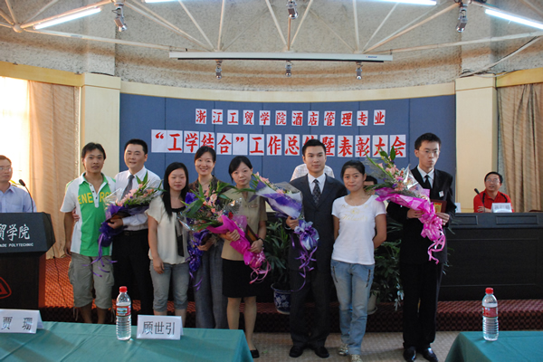 2007年9月27日下午三点半,管理系酒店管理专业“工学结合”总结暨表彰大会在学院多功能厅举行,参会的学院领导有何向荣院长,还有教务处、学生处、校企合作办、高职所及各系部中层干部,并邀请了“工学结合”实践单位(王朝大酒店、维多利亚大酒店、顺生大酒店、万谊商务大酒店及天一角酒园有限公司)的领导与嘉宾,会议由系副书记张勰主持。