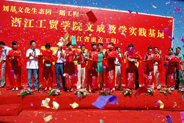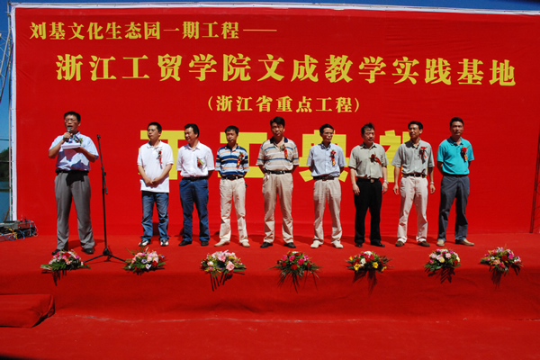 2007 年 9 月 28 日在文成南田镇举行了刘基文化生态园一期工程浙江工贸职业技术学院文成教学实践基地的开工仪式。此工程已被列入今年的省重点工程项目。文成县人大主席、政协主席、县委常委及县各职能部门领导、我院党委书记、院长何向荣教授、副院长盖庆武等领导及学院、冶金房开相关人员出席了开工典礼。
