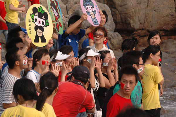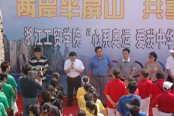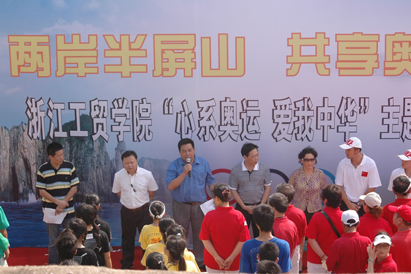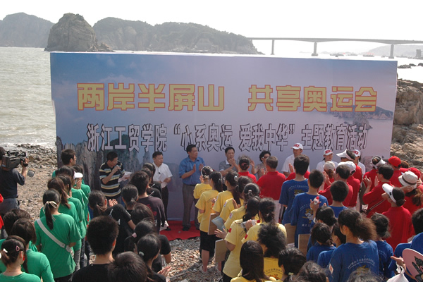 我院24日在洞头县半屏山举行了“两岸半屏山,共享奥运会”主题活动。洞头县政协主席苏彩环、温州市台办副主任钱进、我院孙蔚副院长等领导,台胞台商代表,温州台商协会副会长许灿欣及我院学生代表和温州老年骑协代表200余人参加了活动。