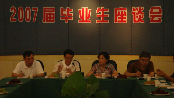 6月29日晚7点,我院在多功能厅举行2007届毕业生座谈会。院党委书记、院长何向荣教授,院党委副书记、副院长孙蔚,院党委委员、副院长盖庆武,院党委委员、副院长贺星岳以及学校各系部、职能部门负责人、部分学生代表一道进行了亲切座谈。孙蔚副院长主持座谈会,希望大家多谈问题,多提建议,以便改进学院今后的工作。