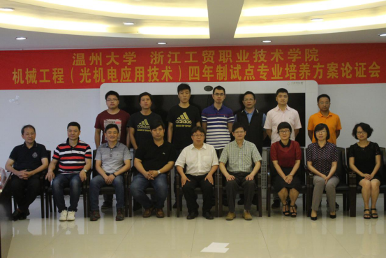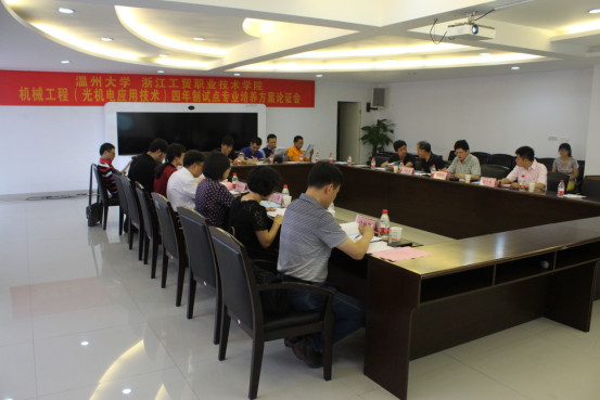 6月8日上午,温州大学、浙江工贸职业技术学院机械工程(光机电应用技术)四年制高职教育专业人才培养方案论证会在我院风险投资研究会议室(技能大楼三楼)召开。温州大学机电工程学院院长周宏明,温州大学教务处副处长孙芙蓉,我院党委委员、副院长张俊平,教务处处长程有娥,久恒光电科技公司董事长吴旭浩等十位领导、专家及有关专业老师参加了会议。会议由张俊平副院长主持。