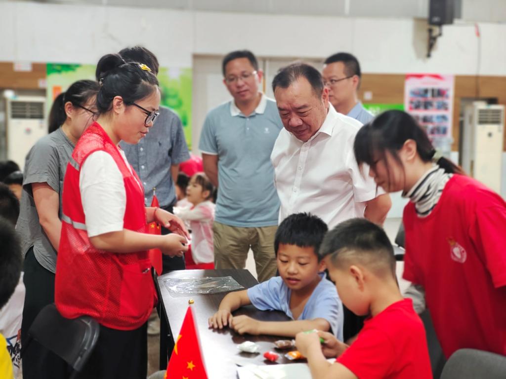 “同学,你老家在哪里?支教活动开展得顺利吗?有没有遇到什么困难?”7月9日上午,学校党委书记盖庆武前往鹿城区仰义街道临湖社区文化礼堂慰问“助育少年之青春,献礼建党一百年”阳光支教暑期社会实践队。在现场,盖庆武书记在听取了实践队伍整体情况介绍,认真观看了实践队员的现场教学情况后,给予了充分肯定。盖书记指出,同学们要珍惜暑期社会实践机会,并借机将在校所学反哺社会,在服务和奉献中扩充视野、历练本领、增长才干,为未来步入社会打下良好基础。同时也希望同学们把温州当作第二故乡,在社会熔炼中更加了解温州、服务温州、建设温州。随后,盖庆武书记还走访慰问了参加第七届两岸青年创客工作坊的大学生创客和志愿者们,盖书记对大学生的创客项目给予了高度肯定,指出今年的作品有创意、有技术、有市场、有价值,并希望同学们将创新创业精神带到今后的学习和工作生活中去,创造更大的人生价值。