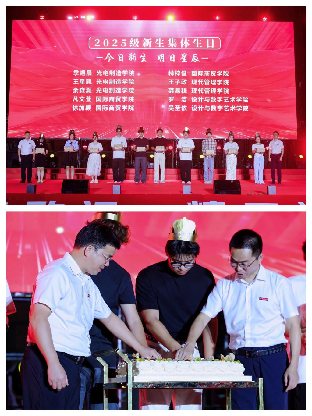 掌声轻起,定格这一幕,在这个满是温情的时刻,10位新同学迎来了他们的集体生日。党委书记张志东、校长余闯与生日同学代表一起切生日蛋糕,现场所有的师生共同为他们唱生日祝福歌,更有无人机“硬核”空降祝福送上生日蛋糕,点燃全场场,祝愿他们在新的一岁里带着最诚挚的期盼乘风破浪,朝着梦想的远方,笃定前行!