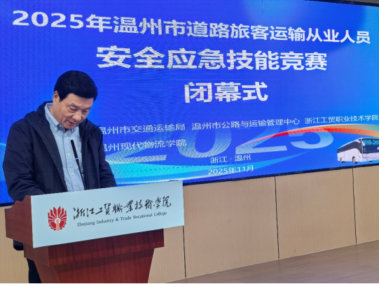 加强道路旅客运输从业人员教育培训和应急演练,是保障人民群众出行安全的关键环节。为促进行业稳健发展,防范化解重大安全风险,11月5日,2025年温州市道路旅客运输从业人员安全应急技能竞赛在浙江工贸职业技术学院举办。本次竞赛由温州市交通运输局、浙江工贸职业技术学院、温州市公路与运输管理中心主办,国际商贸学院(温州现代物流学院)承办。竞赛设置道路运输驾驶员、动态监控人员、安全管理和应急处置人员和客运企业负责人4个职业(工种)赛项,汇聚了全市20余家道路旅客运输企业的76名选手。