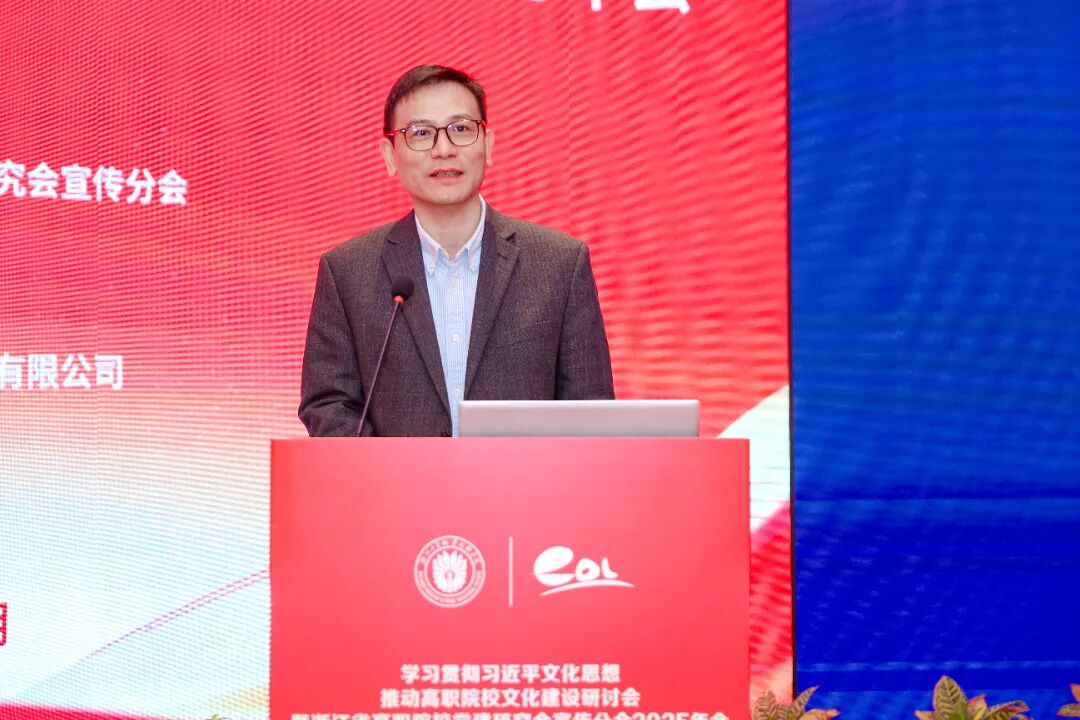 中国教育在线副主编、中教互联总裁赵欣作《从思政引领力到校园文化建设的新路径》主题交流,从思政引领力与双高建设、校园文化建设里路、校园文化建设案例分享三方面阐释思政如何在校园文化建设中发挥引领作用。