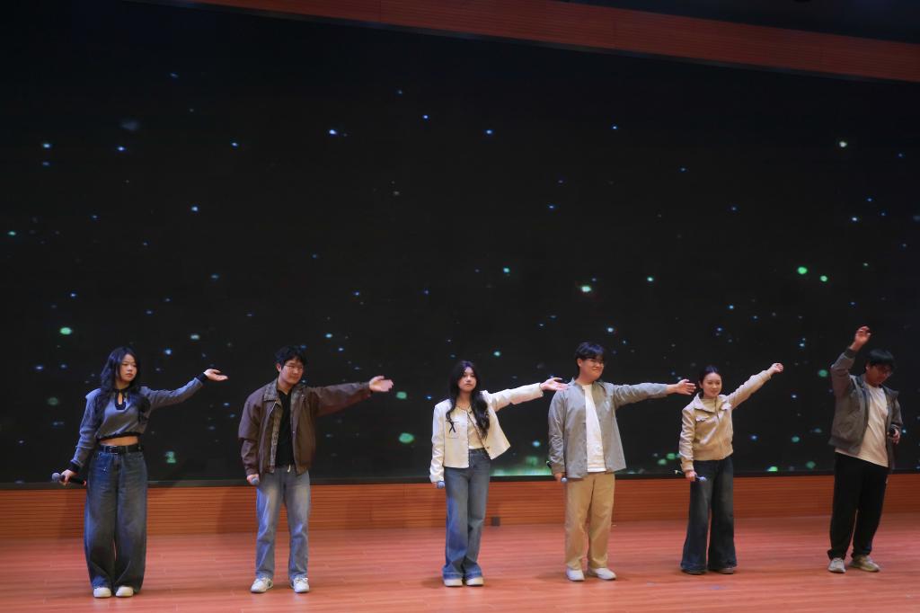 “对话五乐:青春体验说”环节成为启动仪式的一大亮点。五位来自不同领域的“五乐体验官”代表依次登台,分享他们的成长故事与青春感悟。国家奖学金获得者代表夏倩围绕“乐学”,讲述了在专业学习中攻坚克难、追求卓越的历程,分享了“合理分配精力比合理分配时间更重要”的学习心得;“挑战杯”获奖代表徐浩林以“乐创”为主题,分享了从创意萌发到作品落地的艰辛与收获,展现了当代青年敢为人先的创新勇气;体育竞赛获奖代表刘梦瑶结合“乐动”经历,讲述了赛场上咬牙坚持、奋勇拼搏的瞬间,传递了“更高、更快、更强”的体育精神;艺术竞赛获奖代表梁子怡以“乐享”为题,分享了用艺术装点生活、用审美提升境界的感悟,让大家看到艺术滋养心灵的力量;志愿服务代表则以“乐行”为核心,讲述了深入社区、扎根基层的志愿服务故事,诠释了“奉献、友爱、互助、进步”的志愿精神。