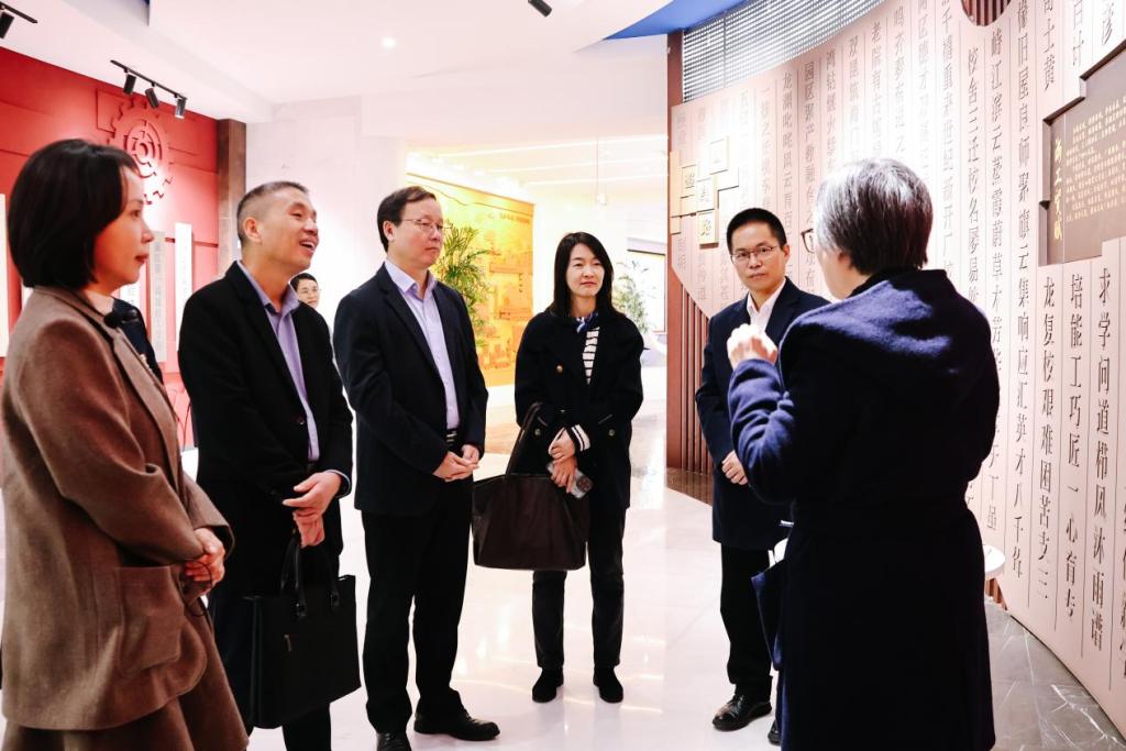 在校史馆,吴万雄一行听取了我校办学沿革汇报,详细了解我校扎根温州办学的历史脉络,了解学校在不同历史阶段的重点任务、特色优势和突出成绩。