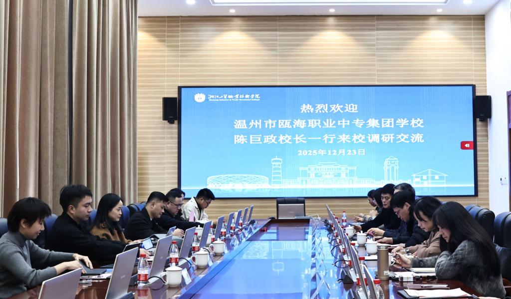 12月23日下午,温州市瓯海职业中专集团学校陈巨政校长一行7人莅临浙江工贸职业技术学院瓯江口校区交流。学校党委副书记王春柳,学工部(招生就业办)、教务处及相关二级学院负责人参加本次交流活动。