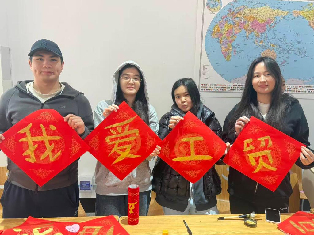 书法老师王积建现场指导留学生书写“福”字,让大家在笔墨间感受中国书法魅力,读懂“福”字的吉祥寓意,亲手勾勒出对新年的美好祝福。