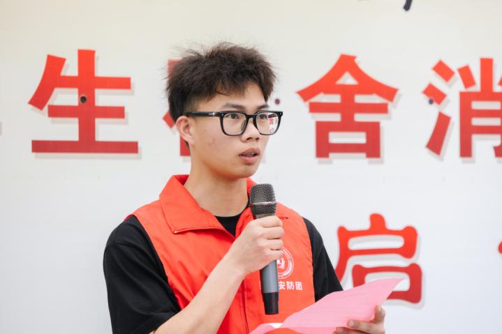 随后,学生代表范一围上台宣读《宿舍消防安全倡议书》,号召全体同学自觉抵制违规电器、主动学习消防技能、积极参与安全排查,共同守护平安宿舍、平安校园。