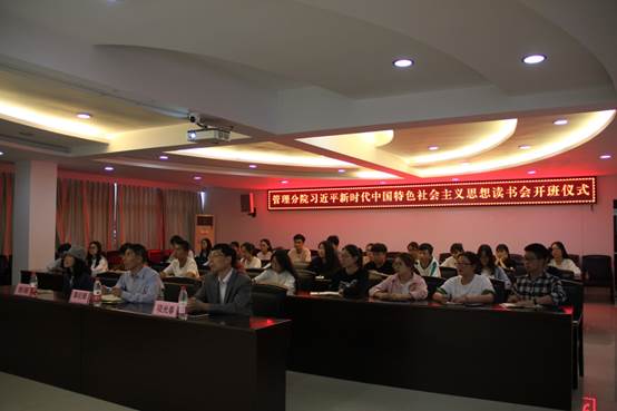 2018年5月4日,管理分院“习近平新时代中国特色社会主义思想读书会”开班仪式在学院三号楼三楼温州风投院会议室举行。管理分院30多位读书会成员参加。人文系党总支书记、马克思主义学院副院长章纪顺老师,管理分院党总支书记项光春老师以及人文系副教授、管理分院“习读会”指导老师郭薇老师等出席仪式。