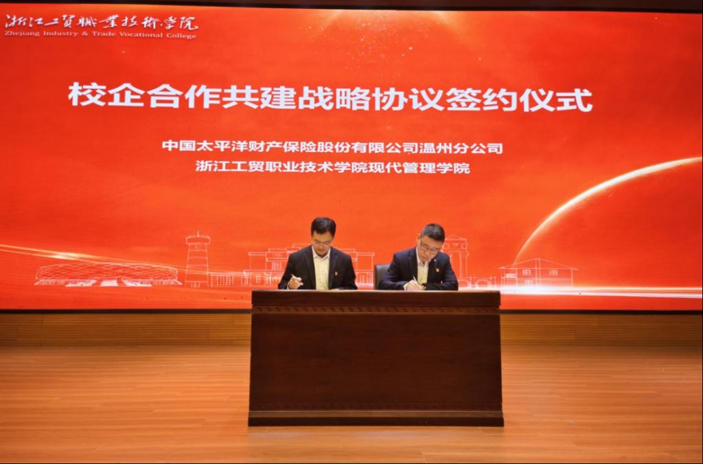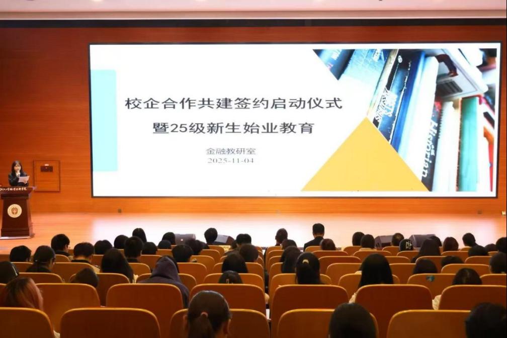 为深化产教融合、推动校企协同育人,助力金融服务与管理专业新生树立专业认知、规划学业发展,11月4日下午,学校现代管理学院与中国太平洋财产保险股份有限公司温州分公司(以下简称“中国太保产险温州分公司”)校企合作共建签约仪式暨2025级金融专业新生始业教育在敬听楼隆重举行。现代管理学院党总支书记邵超群、中国太保产险温州分公司线上平台部总经理张观亮等校企代表出席,金融专业全体老师以及2025级新生共同参与。