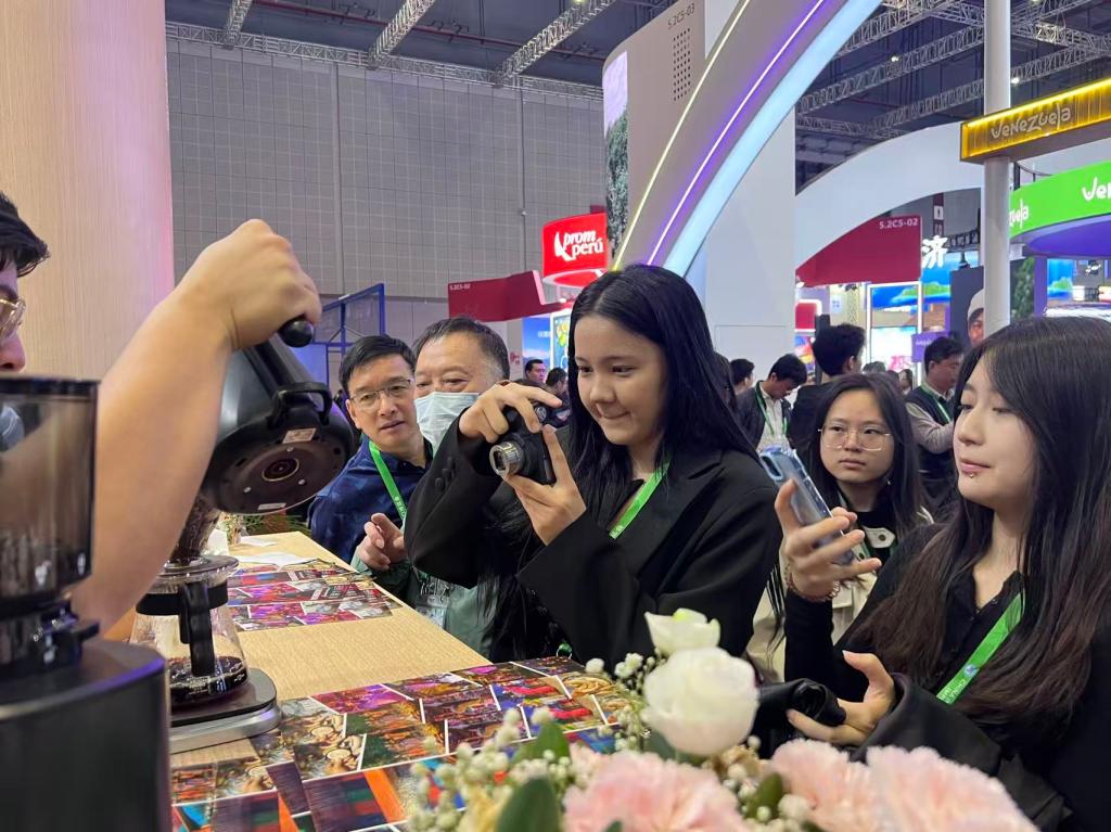 在国家展与农食品展区,来自国际经济与贸易专业的国际学生们找到了与自己专业高度相关的学习内容。在国家展区域,不同国家的特色产品、经贸合作成果集中展示,国际学生们通过与展区工作人员交流,了解各国贸易政策、产业优势与合作机遇;在农食品展区,来自全球各地的优质农产品、食品加工技术与贸易流通模式,让学生们对国际贸易实务、跨境电商等专业内容有了更具象的认知。各国特色农产品展示让留学生们大开眼界,也让他们对国际贸易有了更直观的认识。“从农产品的跨境供应链到国际品牌的市场推广,进博会让我真切感受到国际贸易的动态与魅力,也为未来的专业学习和职业发展提供了新思路。” 国贸专业IRISMATOV ARSLANBEK分享道。