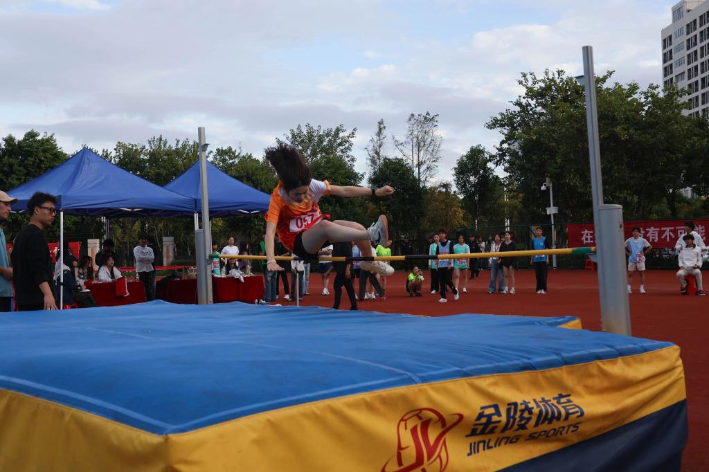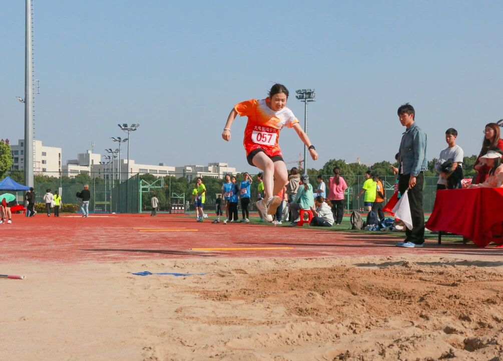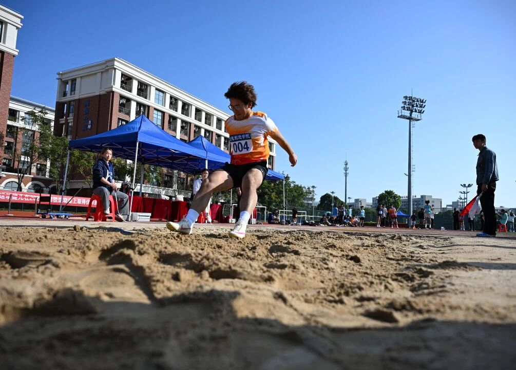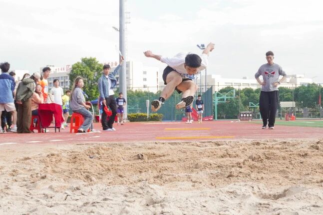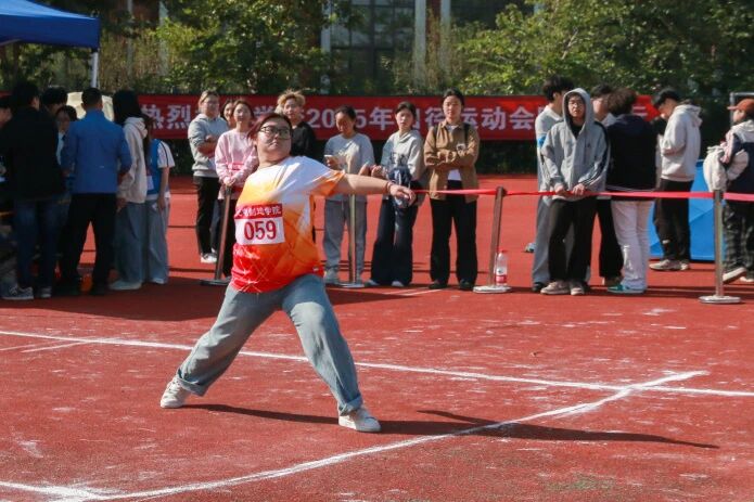 跳高垫前,身影助跑、腾跃而起,脊背轻擦横杆,落地瞬间掌声骤起; 跳远沙坑旁,加速踏板、凌空飞跃,沙粒随落点飞溅,丈量出青春的远度。铅球握于掌心,转体发力掷出,球体划破空气坠向远方;胶球紧握手中,摆臂投出弧线,落地声响伴欢呼漫场。各展所长的赛场,每一刻都闪耀拼搏光芒!