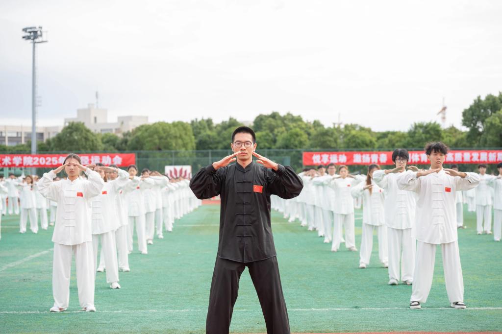 排舞折扇如蝶舞,八段锦拳似风雷。一柔一刚,尽显青春韵律与武术魅力,点燃全场热情!