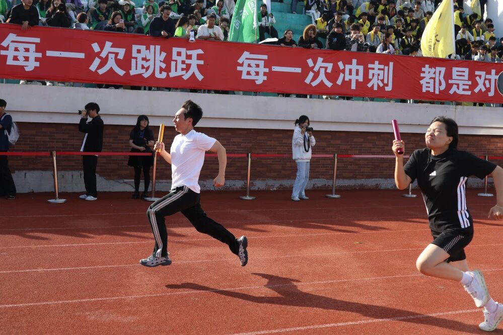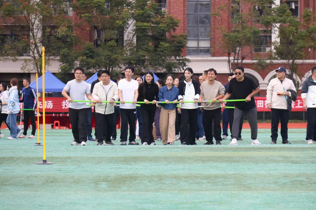 赛场边,笑声与呐喊交织;平日温和的老师们此刻跃动如风。有人攥紧道具奋力前冲,汗珠闪烁笑意;有人彼此鼓劲、互相搀扶,即便气喘仍加速前行。不为名次,只为全力以赴——弯腰、奔跑间透出的坚韧,拼搏的光芒在趣味中愈发耀眼!