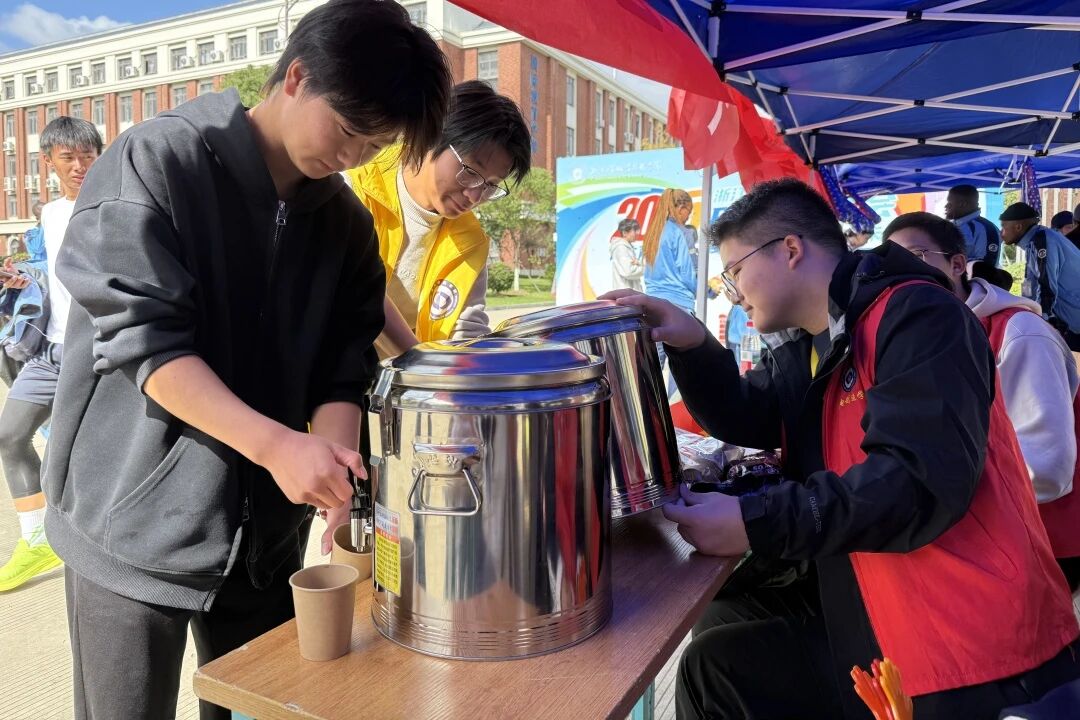 赛场各处,志愿者顶着烈日忙碌不停。搬运器材、分发物资时,额角汗珠滚落却无暇擦拭;蹲身整理运动员装备,穿梭递送饮水纸巾,耐心解答疑问。红色马甲在人群中来回穿梭,虽不在聚光灯下,却用汗水为赛事筑牢温暖后盾。