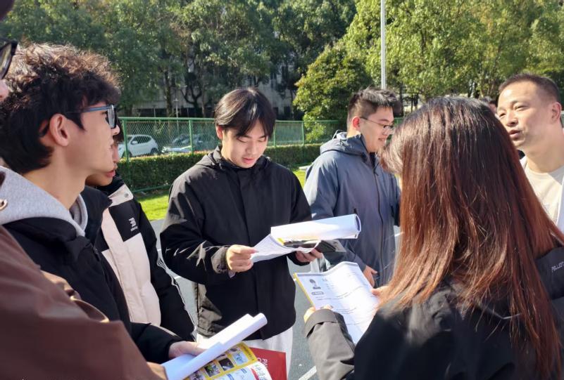 现场别开生面的集章打卡活动为招聘会增添了轻松氛围。光电学子通过参与集章,自然而然地与企业HR展开对话,内容涵盖岗位职责、技术发展、职业通道及能力需求等多个方面,同时也进一步了解了地方就业政策。这种互动形式有效缓解了求职过程中的紧张情绪,推动单向询问转为双向交流,帮助学生在沟通中更准确地评估岗位匹配度。