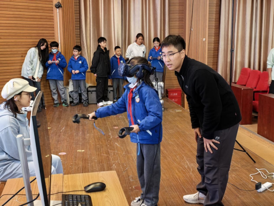 与此同时,VR体验区也排起了长队。孩子们戴上VR眼镜,瞬间“穿越”到奇妙的三维虚拟空间中。无论是探索神秘的宇宙星空,还是“走进”充满未来感的数字校园,沉浸式的体验都让他们兴奋不已,欢声笑语充满整个活动现场。通过亲身体验,抽象的技术概念变成了可感可知的奇妙冒险,科技的魅力深入人心。
